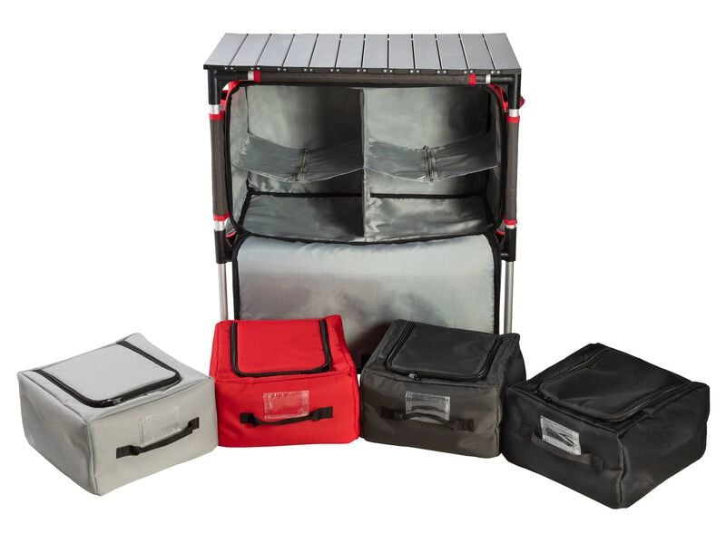 Keep your kitchen tidy wherever you cook with the Sherpa Table & Organizer. This compact, collapsible system provides a sturdy tabletop and four color-coded storage bags for food, utensils, or cookware. Whether used as a prep station or pantry, it helps keep your campsite clean and efficient.