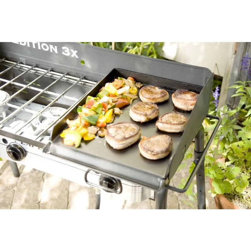 Turn your Camp Chef stove into a restaurant-style griddle with the Professional Flat Top. Its polished steel surface delivers even heating across the entire cooking area, perfect for pancakes, stir-fry, burgers, and breakfast scrambles. Durable and easy to clean, this griddle is ready for any adventure.