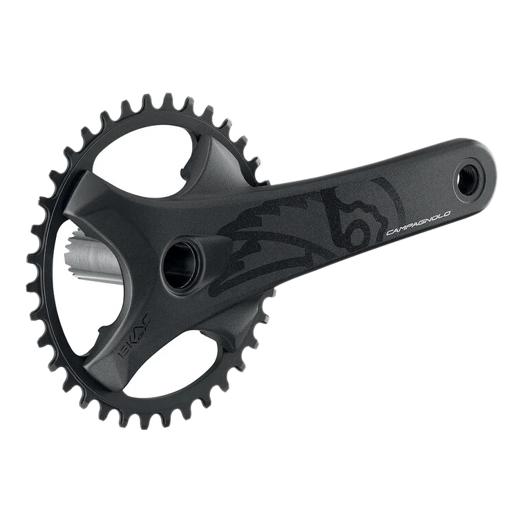 1x drivetrains have changed the way many riders engage with their bikes. There is no longer a need for a front derailleur in most circumstances. The Campagnolo Ekar GT drivetrain brings 1x13 speeds to your gravel bike so you can get the most out of your drivetrain. The Campagnolo Ekar GT Crankset is the perfect solution for gravel. The two aluminum cranks are fitted with semi-axles in AISI 630 steel. The new ProTech technology joins the two semi-axles inside the bottom bracket, with a single sturdy screw. The oversized stainless steel bearing race is on the crank, fitted onto the semi-axle for maximum smoothness and resistance. The lightweight resistant chainrings in 7075 aluminum are easily interchangeable: simply unscrew them off the four arms of the crank with no need to dismantle the crankset. The four arms are arranged symmetrically for optimum load distribution and have a 104mm bolt circle diameter.
