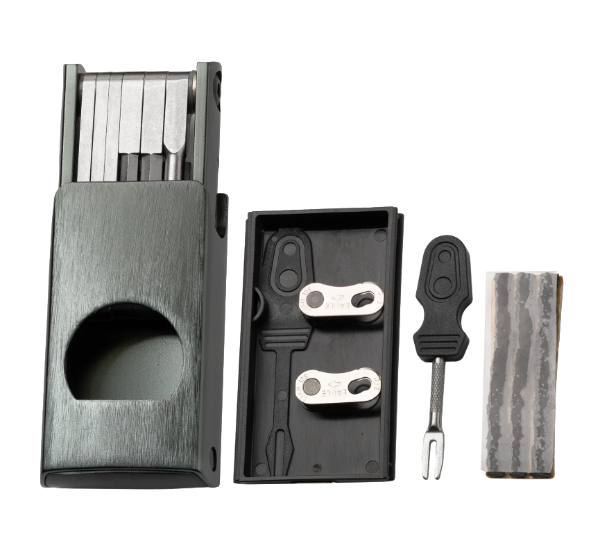 Do you have a loose nut or bolt on your bike? It can easily ruin a fun ride if something on your bike is loose. With a multi-tool, you can keep your components tight for the ride ahead. The Crankbrothers F11 Multi-Tool has 11 tools, including an integrated tire plug tool. Tire plugs come included with a storage case that mounts directly to the tool. The case can be used to conveniently store chain links. This F11 Tool comes with a #2, 2.5, 3, 4, 5, 6, 8mm hex wrench, Phillips, Flat head, and a T25 Torx.