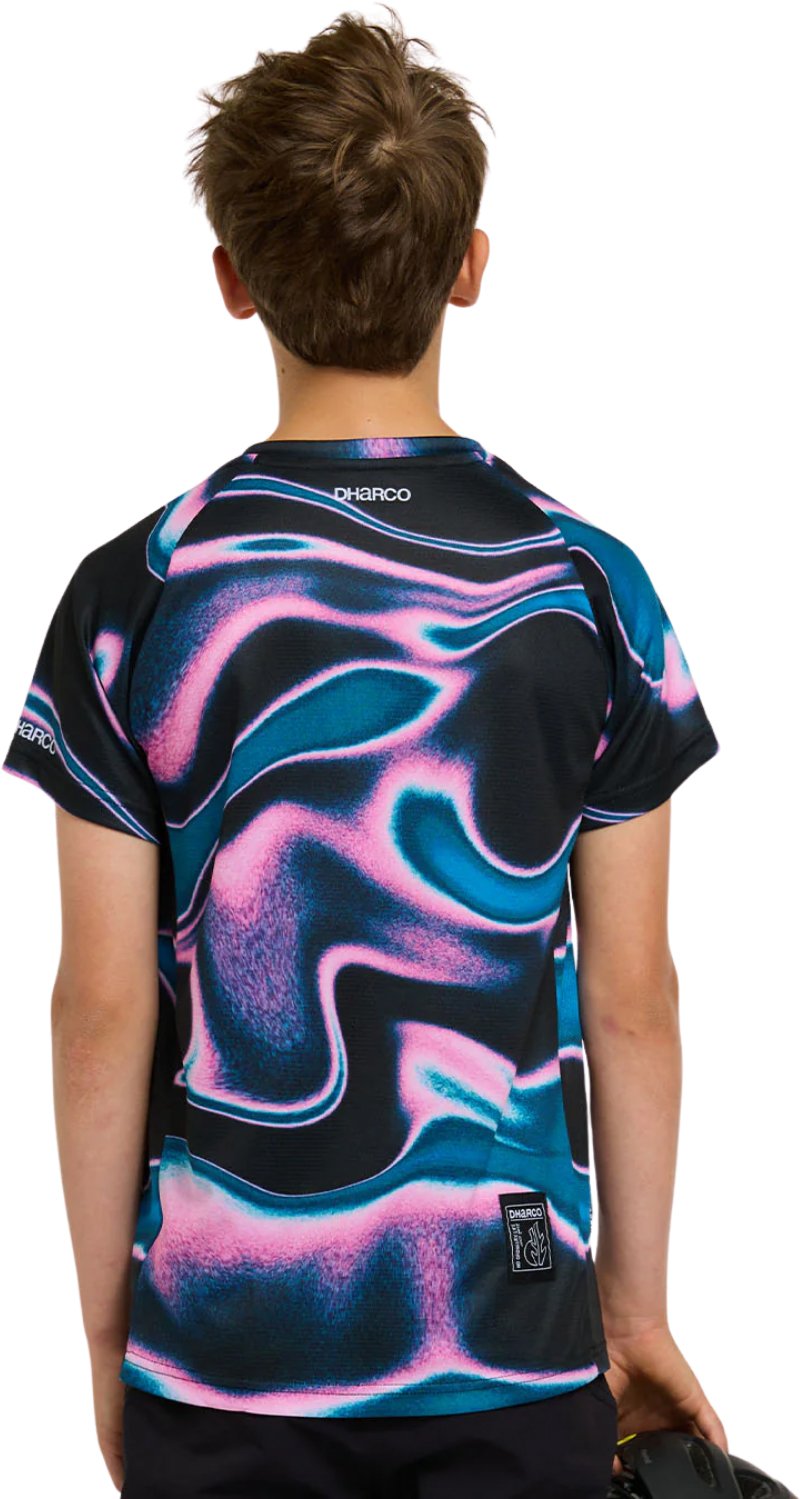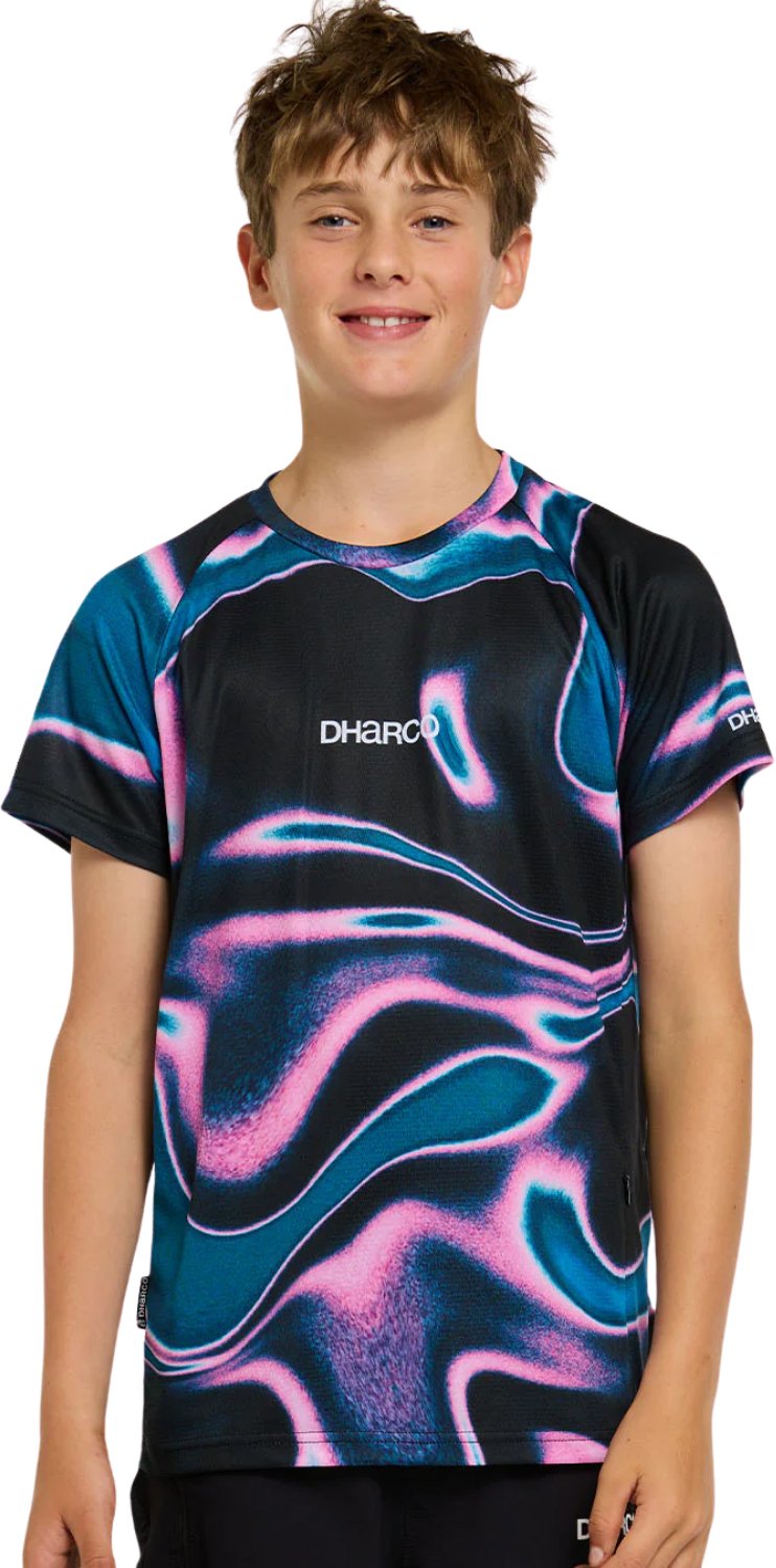 The Dharco Youth Short Sleeve Jersey brings style and performance to young riders on trails everywhere. With a slim modern cut and a lightweight, breathable construction, this jersey is the ultimate go-to. The jersey uses polyester fabric designed to wick moisture away from the body and dry quickly, with side mesh panels for additional airflow. When the trails get technical, the four-way stretch fabric moves with you as you handle tricky terrain. Got some stuff to stash? The zippered side pocket is a convenient spot to secure some small ride essentials. The Dharco Short Sleeve Jersey is even crafted from 100% recycled polyester for a smaller environmental footprint.