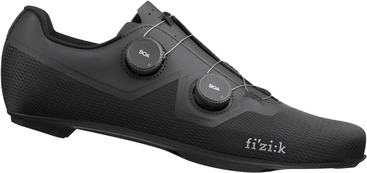 Fizik's Lyra is a well-rounded road shoe built for riders who want pro-level DNA without sacrificing all-day comfort. Designed with a modern ergonomic shape and an expanded, rounder toe box, the Lyra provides a natural, supportive fit across everything from training rides to race day. A soft, breathable engineered mesh upper keeps things cool and light, while PU-laminated reinforcement zones add structure where it counts. The fiber composite outsole delivers an outsole stiffness rating of 8 for efficient, responsive power transfer, and the dual-dial Li2 BOA® Fit System allows for independent instep and midfoot adjustments—so your fit is always dialed, mile after mile.
