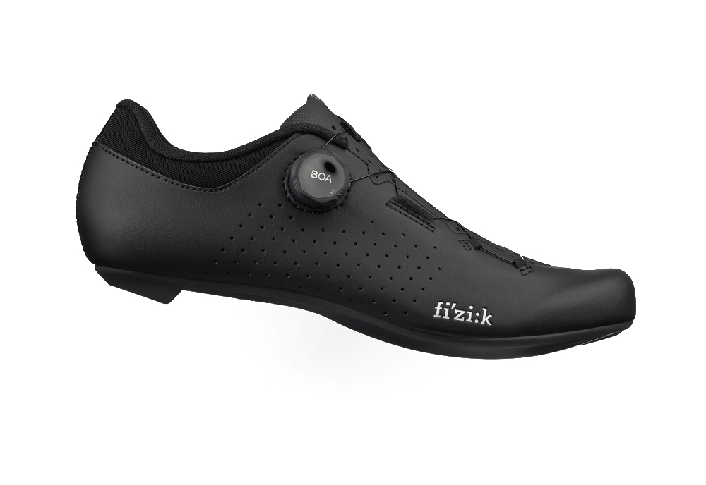 With trickle-down features from the top-level Fizik race shoes, the Fizik Vento Omna Shoes are engineered for performance and comfort for competitive riders. The Vento Omna uses a newly redesigned R5 nylon outsole, this moderately stiff sole balances pedaling efficiency with all-day comfort, with a slightly rearward cleat positioning for less knee compression and increased efficiency. The Li2 BOA® Dial C Fit System uses textile lace guides to adjust tension evenly across the top of the foot, all at the twist of a dial. The ventilated PU upper provides supple comfort, airflow, and a high-density construction for increased stability and power transfer. For gran fondos to criteriums, the Fizik Vento Omna Shoes are race-ready shoes for riders of all types.