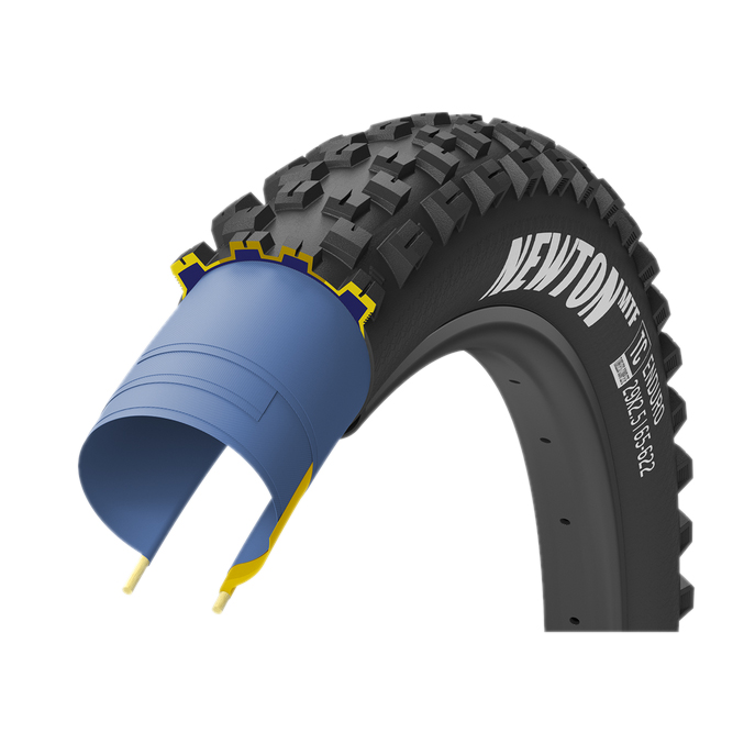 When it comes to shredding the singletrack, you'll want tires that won't hold you back. A good set of tires underneath you will get you through any situation. The Goodyear Newton MTF 29" Tire excels in intermediate to wet conditions. It is a gravity-focused tire that's at its best on the front wheel, most at home on challenging terrain where high levels of control are required. From aggressive trail riding to the demands of downhill racing, the Newton MTF delivers consistent cornering bite, predictable braking control, and premium performance. The tread design features ramped center knobs to reduce rolling resistance, while tall, arch-supported side knobs provide fierce braking and cornering grip.