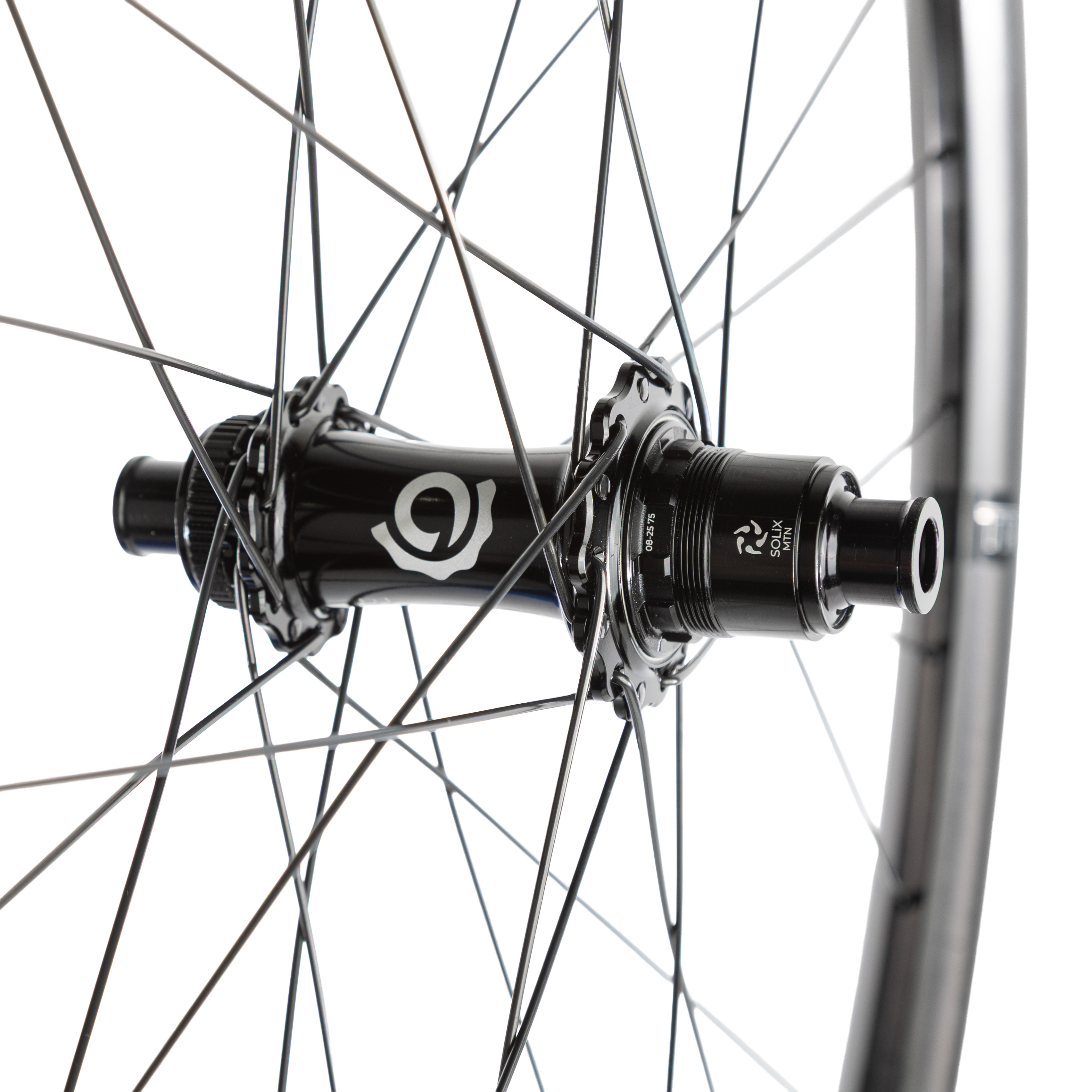 The Industry Nine Solix Trail S Carbon Wheelset is a high-tech, high-performance trail-oriented wheelset to bring your trail bike to the next level. The wheelset is designed to be lighter, stiffer, and tougher than ever before, making it perfectly suited for bikes with up to 140mm of travel. A 28mm internal rim width supports tires ranging from narrow race-ready XC tires, to big trail-focused rubber. At the heart of the wheelset is the new Industry Nine Solix hub, featuring the lowest drag of any hub I9 has ever made, and with 0.59 degrees of freehub engagement for instant power transfer. Every trail has hero dirt with the Solix Trail S Carbon Wheelset.