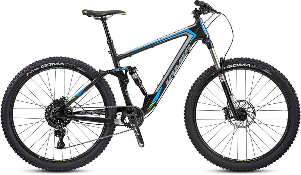 The Dakar XCT Race features Rockshox Monarch and Recon Series suspension that gives you prowess over a variety of terrain types. It also has an 11 speed SRAM kit, meeting the perfect point between performance and price. The Ritchey Trail cockpit is is short, low, and wide, giving you optimal control. The KS Crux Integra dropper seatpost lets you climb and descend with ease, while Jamis lock on grips and a WTB Volt Comp saddle offer premium comfort and handling.