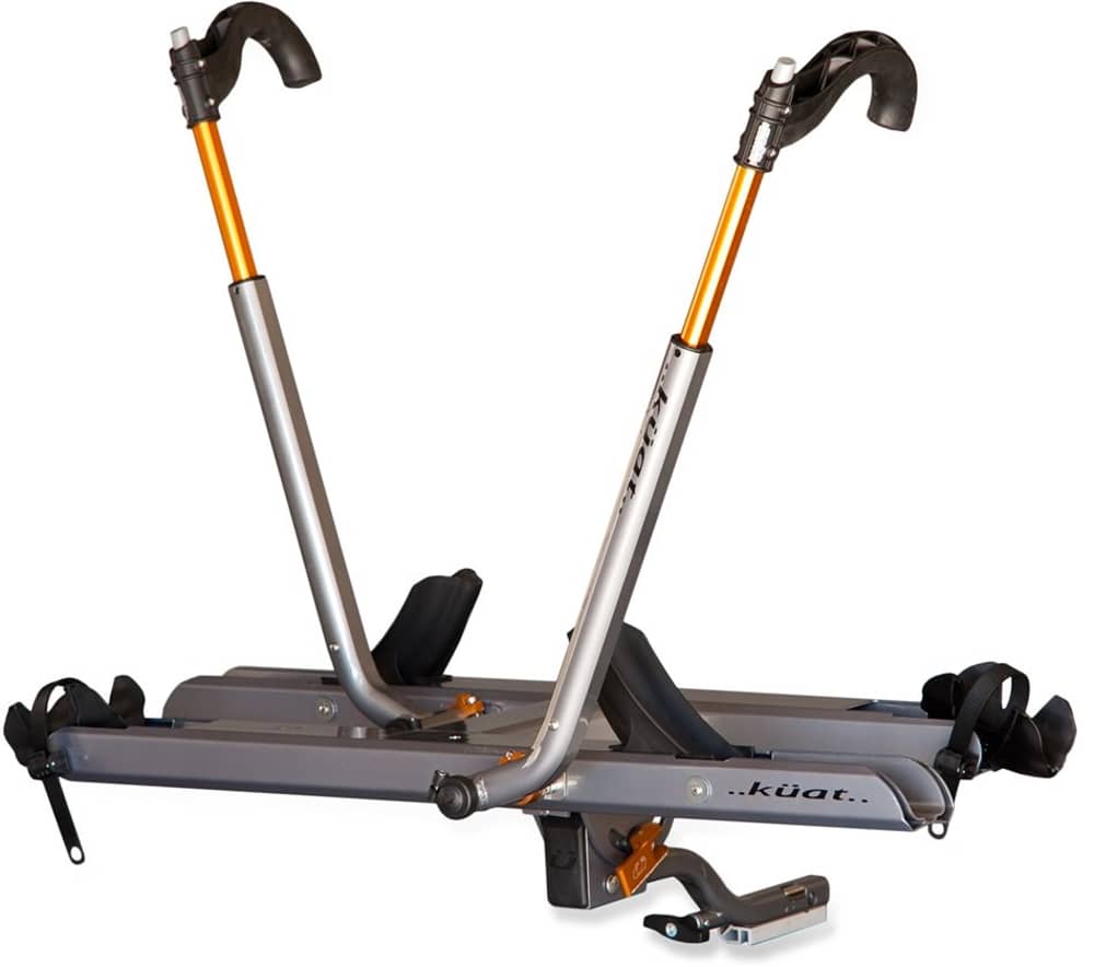 Grab your favorite riding buddy, load up the whips and set out for a weekend of riding, in two shakes of a hardtail, with the Sherpa tray hitch rack by Kuat! The Sherpa carries 2 bikes of up to 40 lbs. each for a total carrying capacity of up to 80 lbs. The front and rear tire ratchets make loading and unloading quick and painless, while the ability to tilt downward enables easy access to the rear of the vehicle. Should you need to dismount the rack, the Sherpa compactly folds up for convenient storage. The anodized aluminum accents give the Sherpa a refined, yet sporty look that'll have you wanting to leave it on all year long.