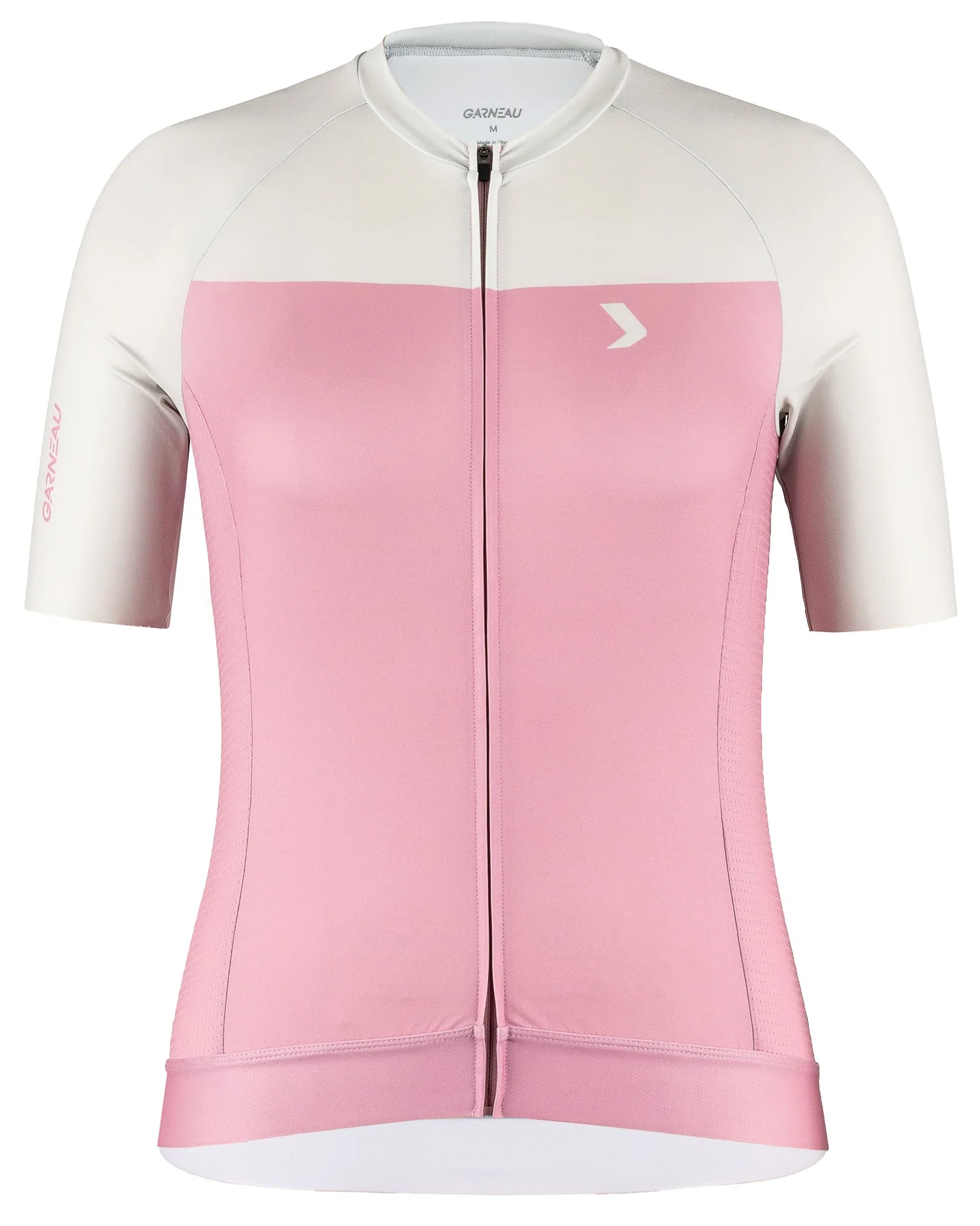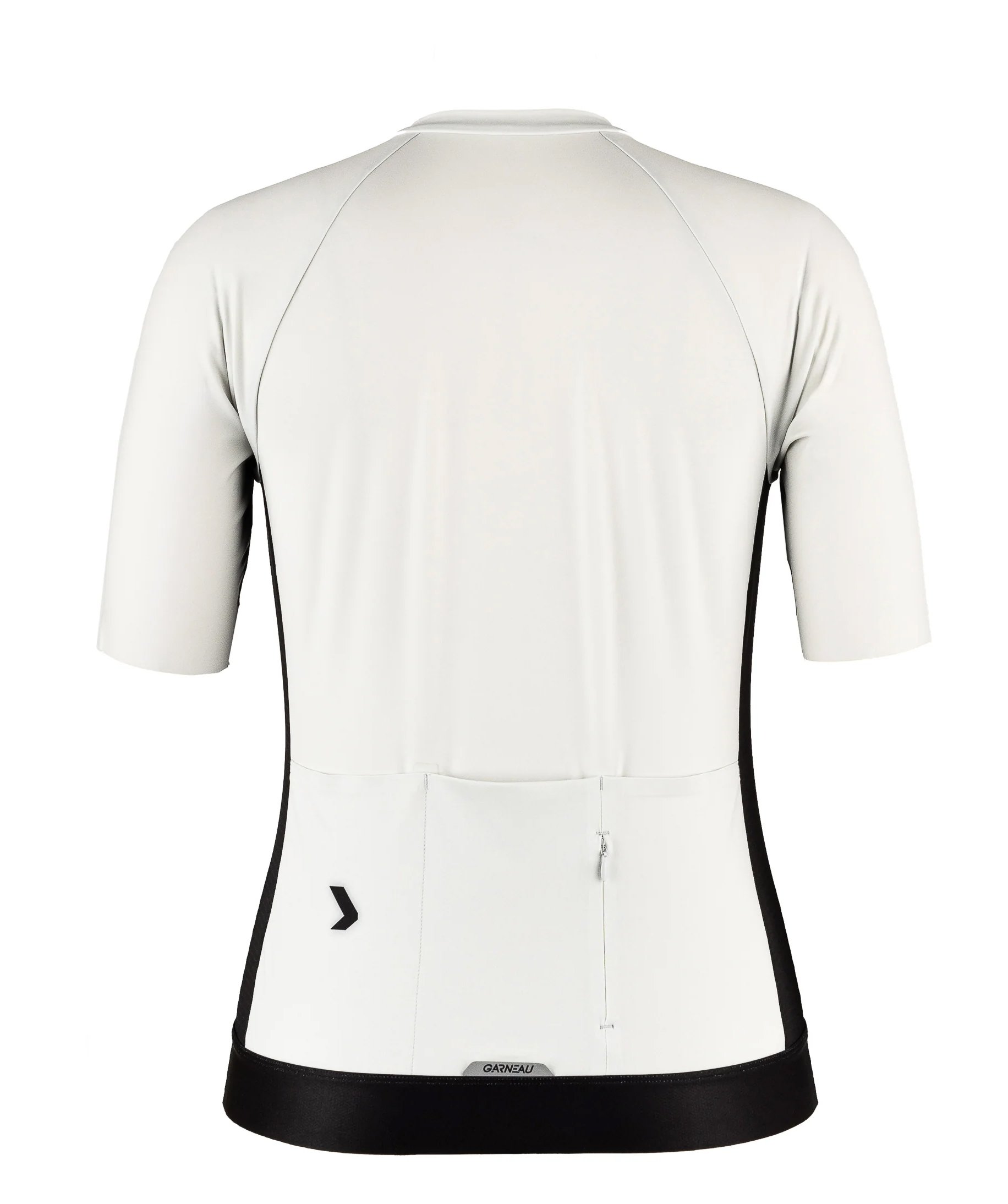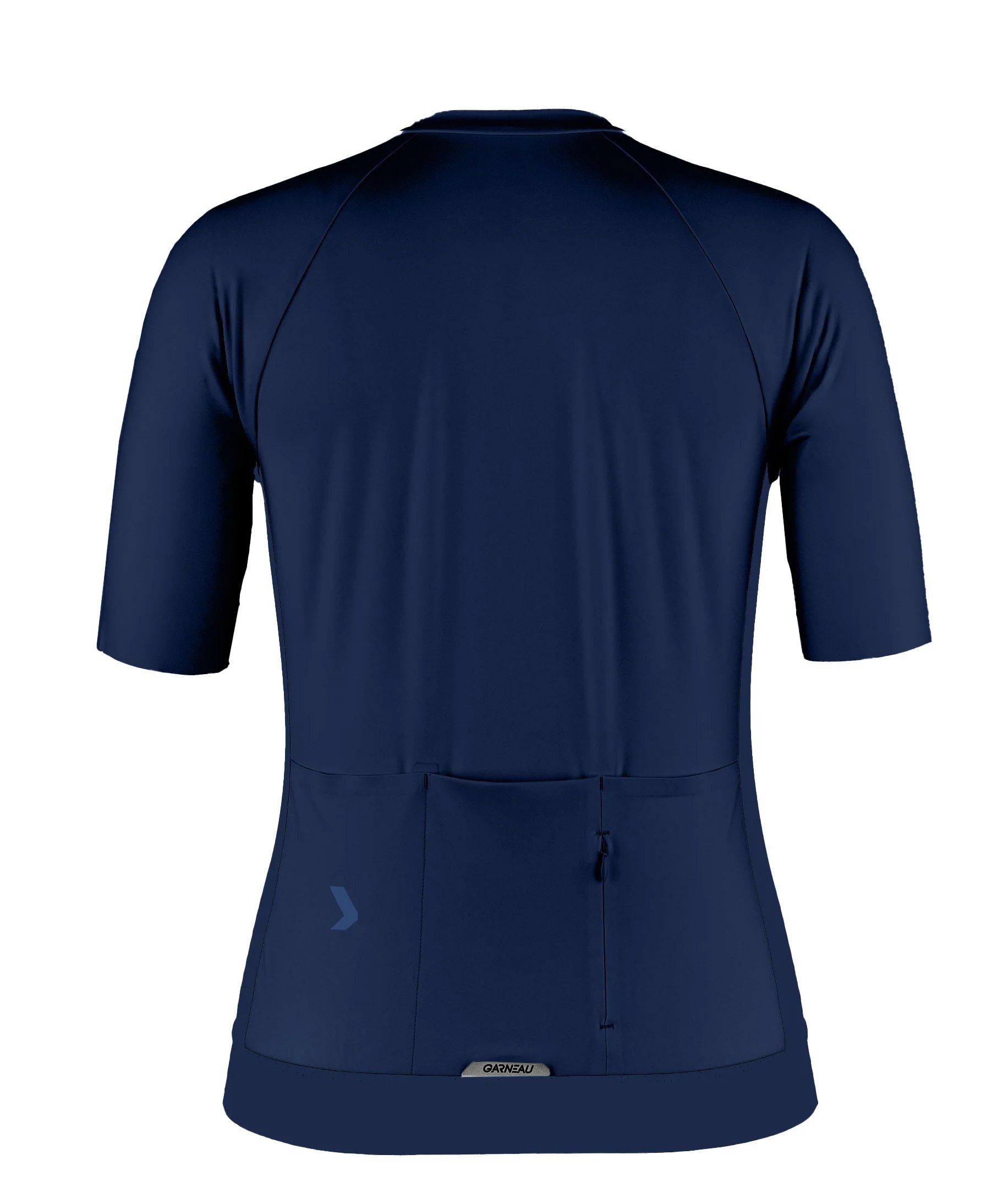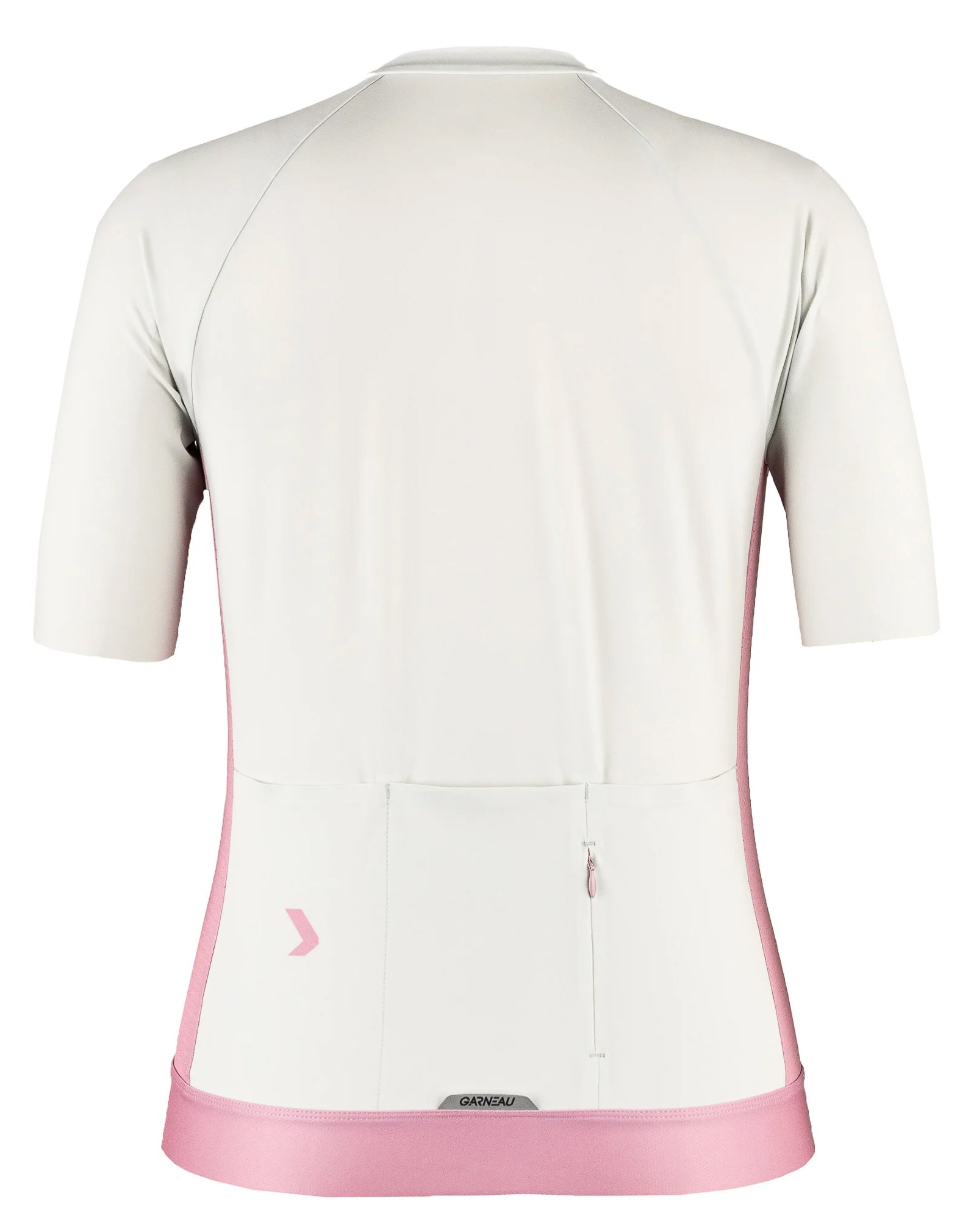 The Louis Garneau Women's Speed Evo Jersey is a lightweight, breathable cycling jersey designed for performance. Made with moisture-wicking AirDry Micro fabric, it ensures quick drying, an aerodynamic silhouette, and UPF 50+ sun protection. Features include laser-cut seamless sleeves, a silicone grip hem, three back pockets (one zippered), and a reflective trim for enhanced visibility. Perfect for road cyclists and endurance riders seeking comfort and style on every ride.