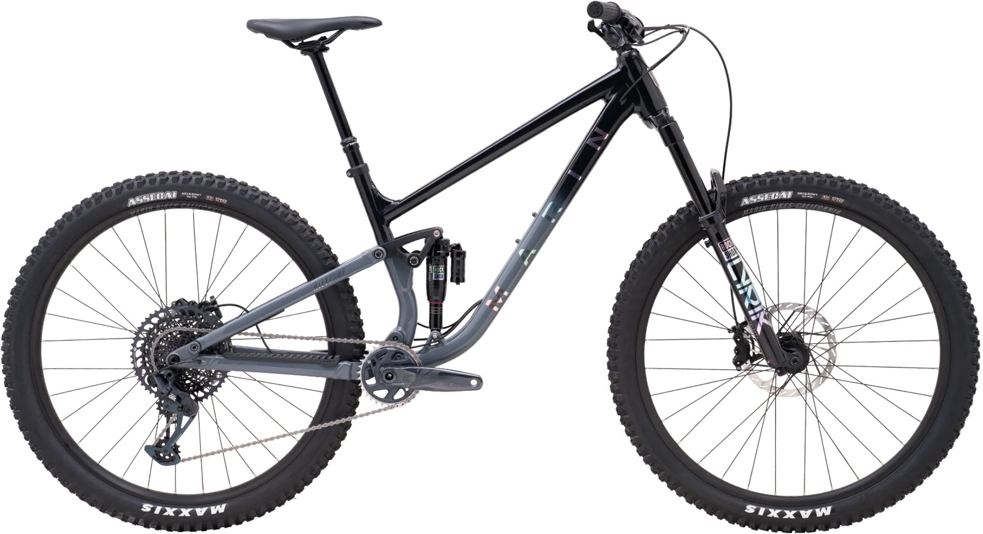 The XR version of the Marin Rift Zone 27.5" Bike comes with a SRAM GX Eagle 12-speed drivetrain. This includes a cassette that has a hill-crushing 10-52T gear range that makes climbing and pedaling through demanding terrain much easier. SRAM DB8 4-piston hydraulic disc brakes provide highly reliable stopping power so you can descend under control. Marin double-wall aluminum rims are paired with Maxxis Assegai tires that can be set up tubeless for a smoother ride, better traction, and fewer flats. With the TranzX Dropper Post, you'll be able to quickly lift and lower your saddle with the press of a lever.