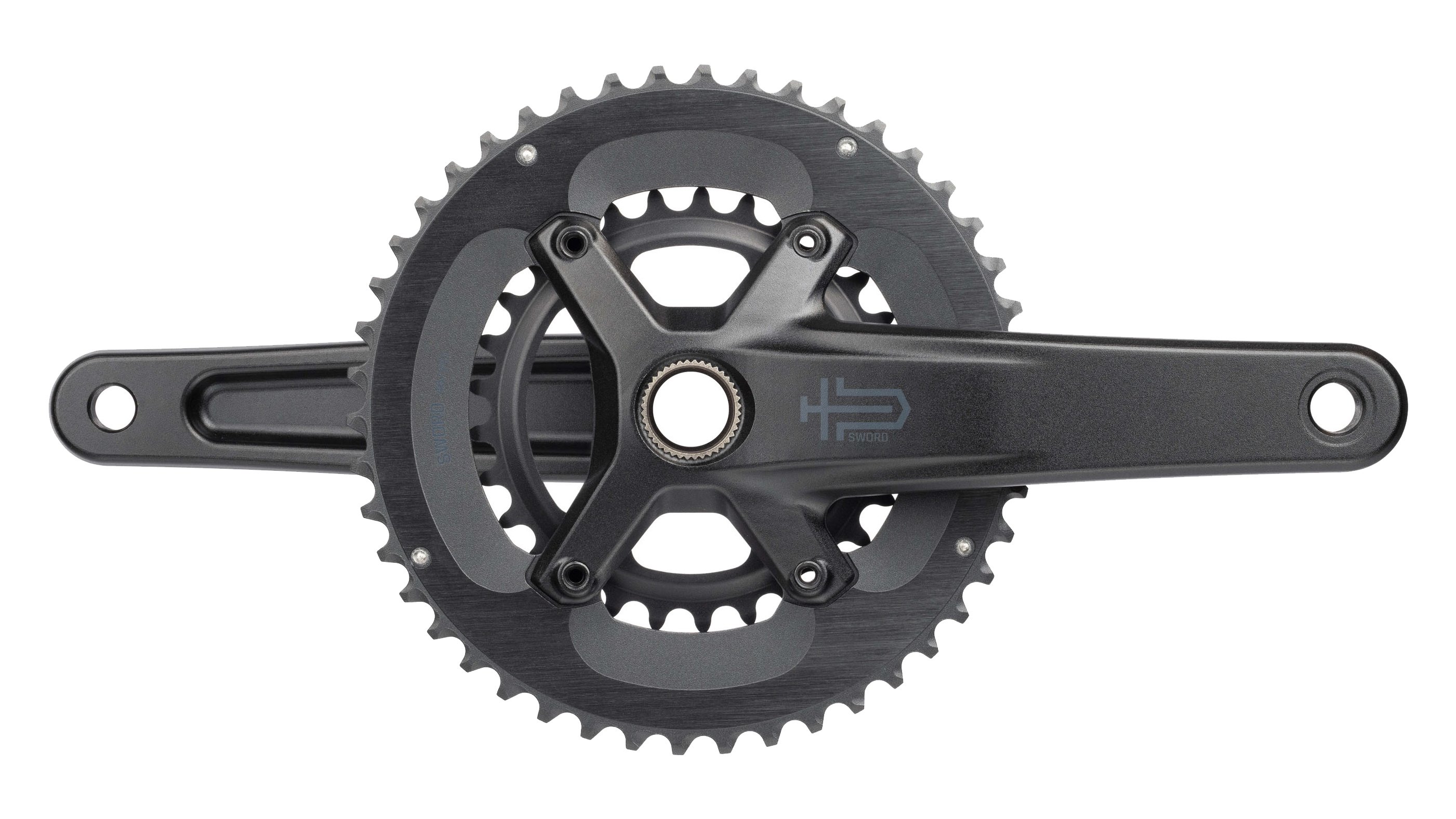 The MicroSHIFT Sword 2x crankset is designed for climbing. The two chainrings have a 17T gap between them, so you get a lower gear range than competitive cranks while still having high gears to push the pace downhill. And it's designed to be as compatible and easy to own as possible: the 24mm spindle is compatible with a ton of aftermarket bottom brackets, and it's easy to convert from a 2x to a 1x crank by installing a single chain-retaining ring in the outer position.