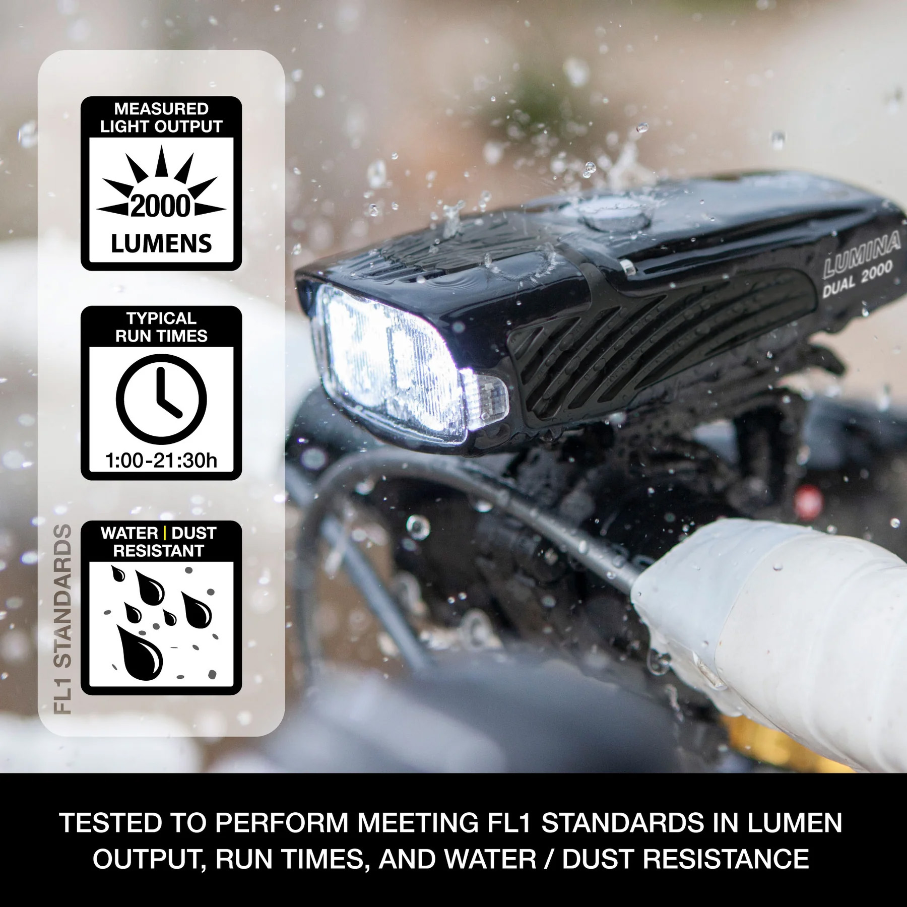 Lights are beneficial for cycling at all hours of the day. Whether you're riding at night or during the day, a light will help improve your visibility. The NiteRider Lumina Dual 2000 Front Bike Light features a dual LED setup that produces 2000 lumens of light, more than capable of navigating the toughest off-road terrain while being nimble and versatile enough to tackle long, arduous paved commutes. This light features a low battery indicator, a handlebar clamp mount, water-resistant USB-C, and 7 light modes.
