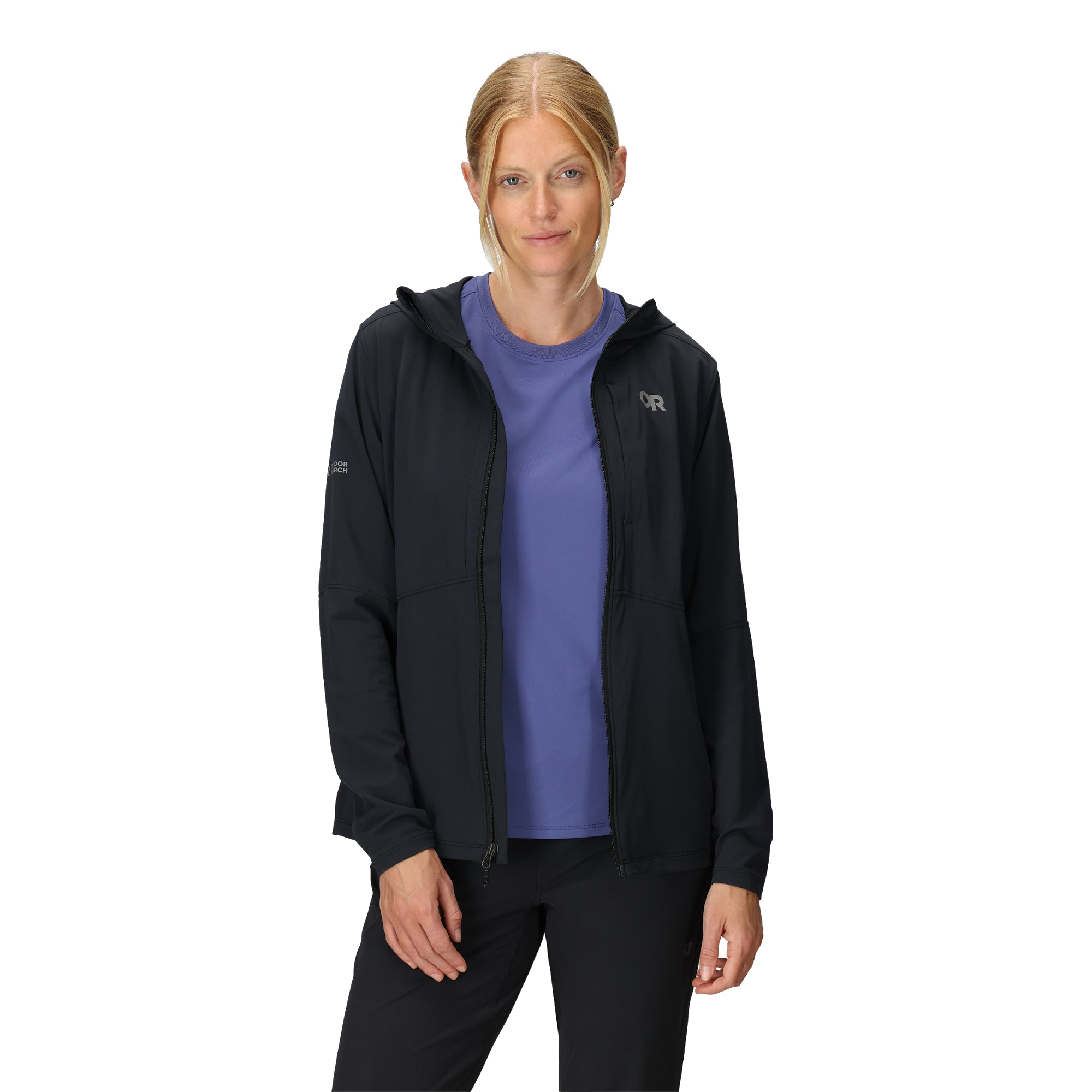 The Outdoor Research Ferrosi Hoodie is a lightweight, stretchy, and breathable 3-season layer built from award-winning Ferrosi fabric, ideal for active use on the trail, whether backpacking, day hiking, or approaching the next boulder project. Crafted from a Bluesign-approved nylon blend, the water and wind-resistant Ferrosi Hoodie delivers maximum breathability and movement-mirroring stretch with an almost weightless fit and feel. Its streamlined design features an adjustable and stowable hood, an adjustable drawcord hem, and stretchy, secure wrist cuffs. Zip chest and hand pockets keep essentials secure and close by, and the left-hand pocket doubles as a stuff sack for easy stowage and packability.