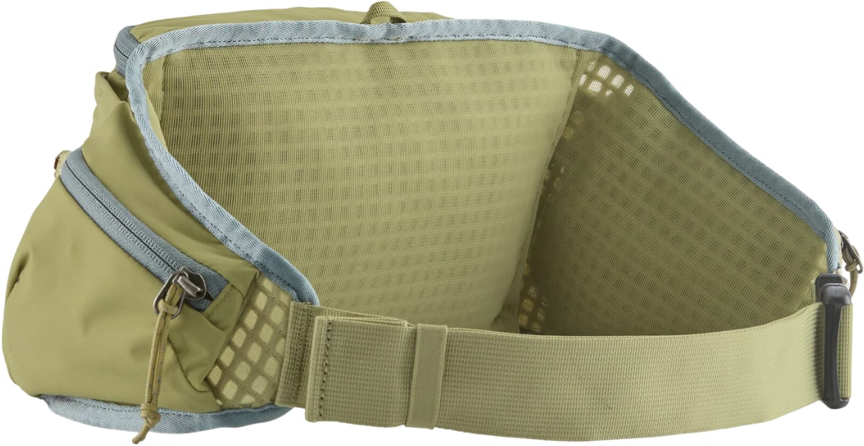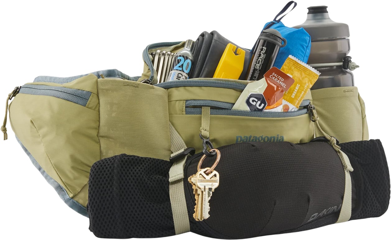 The Patagonia Dirt Roamer Waist Pack provides riders with 3 liters of MTB-specific storage in a compact, stable design. Built with a one-piece Regulator® airmesh hip wrap, it distributes weight evenly across three large zippered pockets and dual water bottle holders for a bounce-free fit. Durable recycled nylon fabric provides long-lasting durability for rugged trails, while deployable straps and internal dividers provide versatile on-body storage. Lightweight and breathable, this Fair Trade Certified™ pack keeps tools, layers, hydration, and valuables secure without slowing you down.