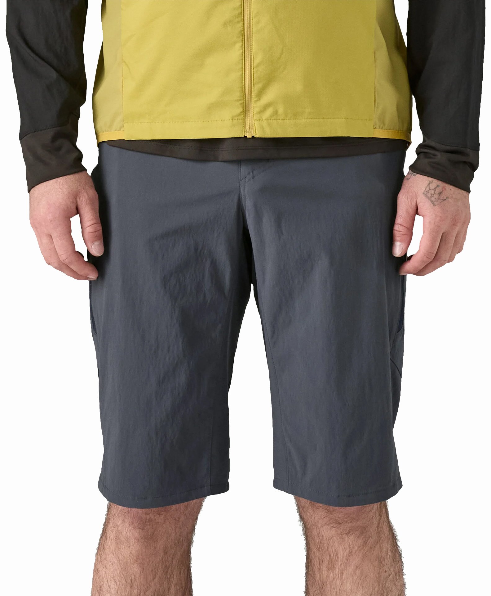 When you're out cruising the trails, you'll want durable, comfortable shorts to wear. The Patagonia Men's Landfarer Bike Shorts have a 13" inseam and are built from sturdy, stretchy fabric in a comfortable, bike-specific fit that's as ready for quick hometown rip as a full day in the backcountry. The Landfarer Bike Shorts feature a low-profile, elastic-paneled waistband with a zip fly and a button closure that minimizes waistband stacking for a chafe-free fit under a pack hip belt. With two secure, zippered thigh pockets and one drop-in pocket with a snap closure at the left hip, you'll be able to securely store your riding essentials.