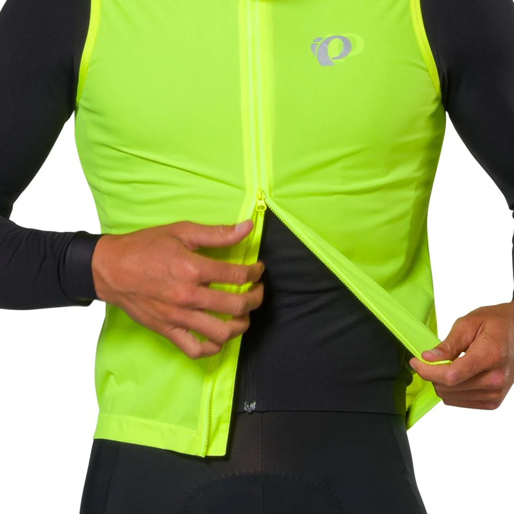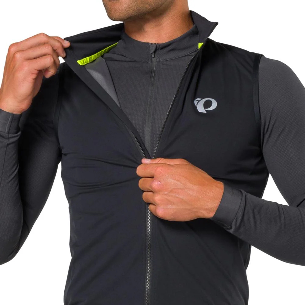 For those rides when it's too warm to wear a jacket and too chilly to wear just arm warmers, there is the vest. The Pearl Izumi Pro Barrier Vest is a highly packable wind vest with a high-stretch 2L membrane that blocks unexpected wind and rain. It has a lightweight, high-stretch knit face fabric for a compressive fit and PI Dry C0 Technology for a PFAS-free durable water repellent. The YKK two-way front zipper helps with ventilation and makes access to your rear jersey pockets easier. The silicone rear gripper helps keep the vest in place and the BioViz reflective elements improve your visibility in low-light conditions.