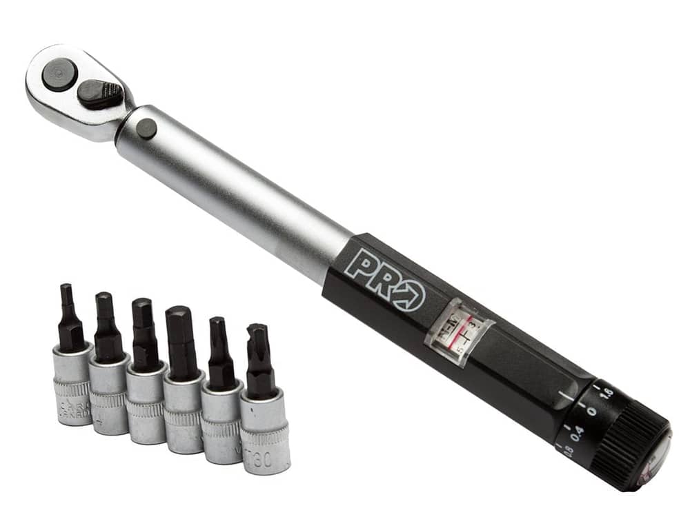 With so much carbon on modern bicycles, torque wrenches are becoming more of a necessity. The PRO Torque Wrench will provide you everything you need to properly tight the bolts on your stem, handlebars, seatpost and more! No longer worry if you're over-tightening your bolts and crushing your expensive carbon fiber components with the PRO Torque Wrench!