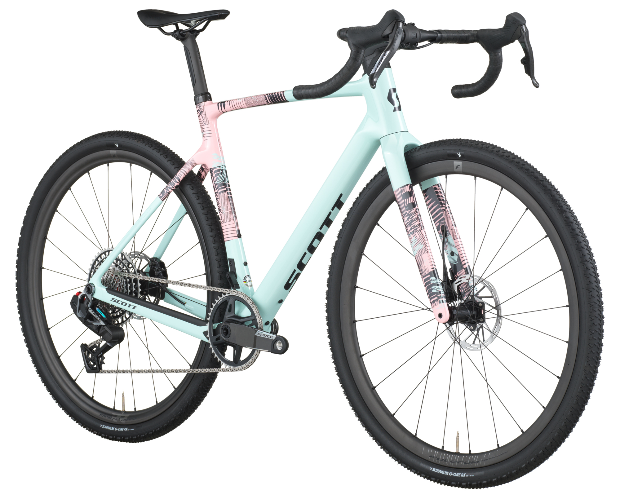 This Addict Gravel 10 build centers around SRAM’s Force XPLR AXS 13-speed electronic drivetrain for ultra-precise wireless shifting with a clean cockpit setup, paired with effortless braking control and a wide 10–46 range that makes steep climbs manageable and fast descents easier to stay on top of. Fulcrum Rapid RED carbon wheels keep acceleration sharp and steering precise, while Schwalbe G-One RX 700x45C tires bring traction and control when you’re picking lines through rougher gravel.