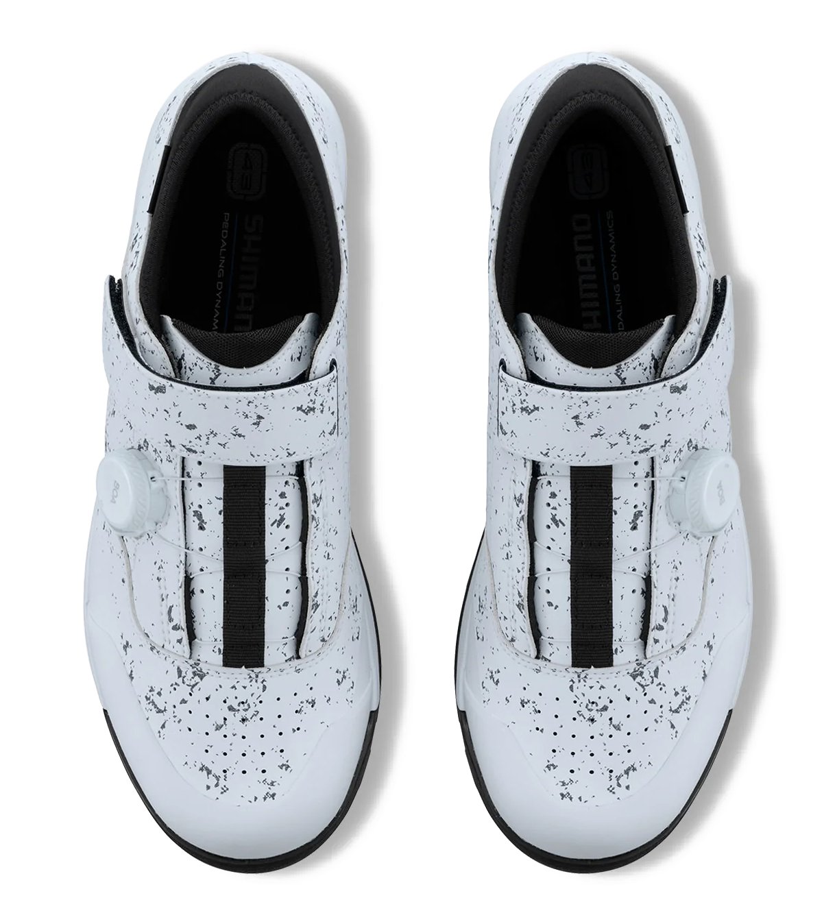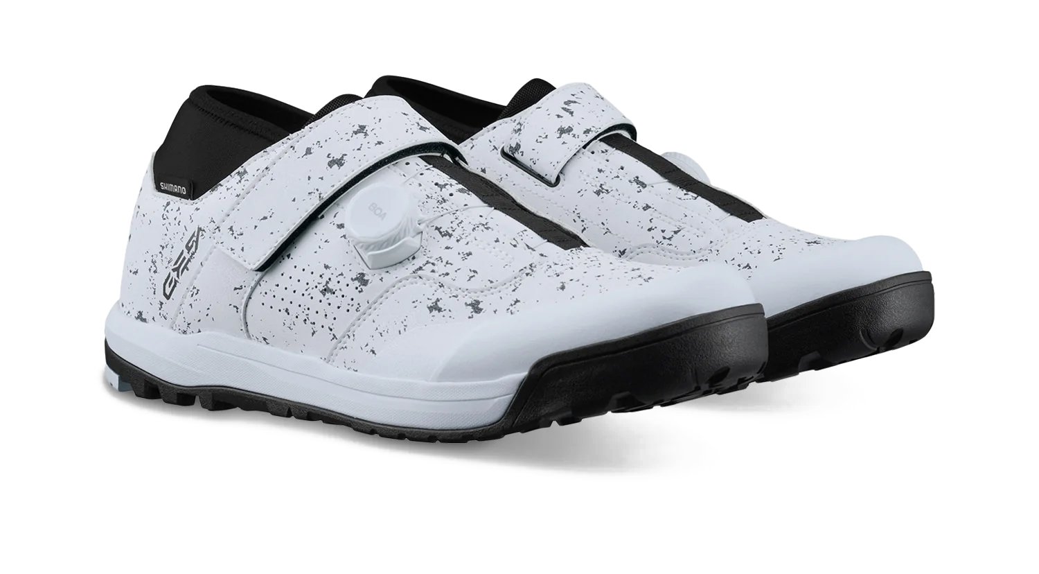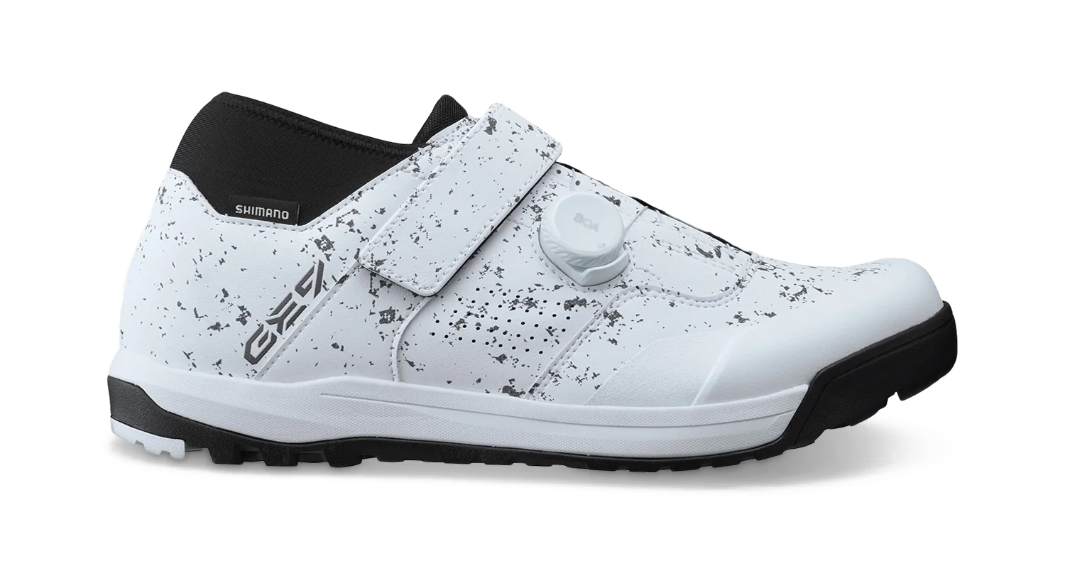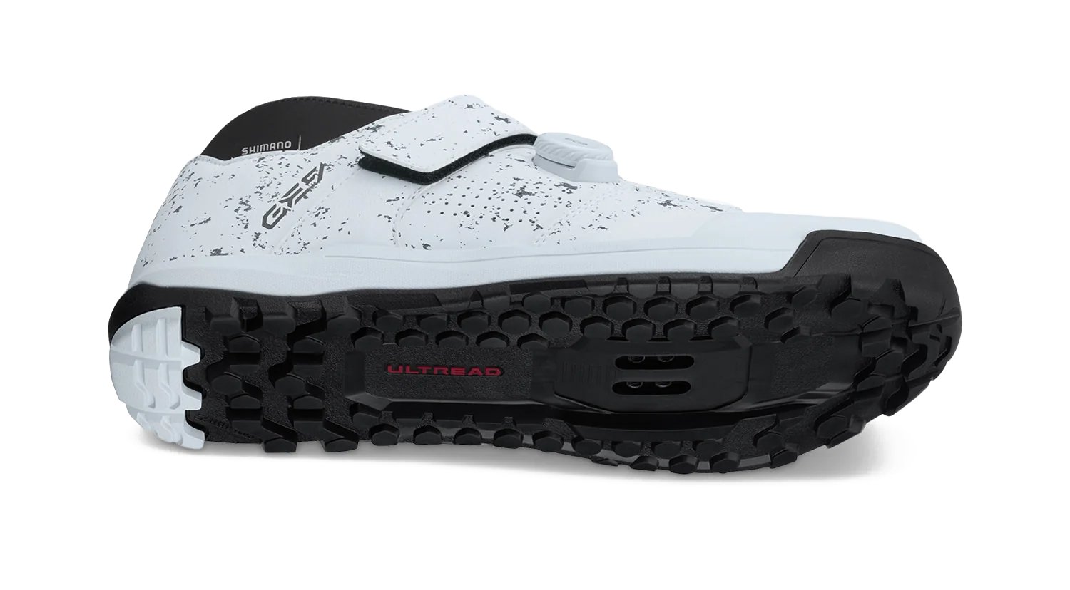 The Shimano SH-GE900 HS (Hot Seat) takes the proven design of the GE series and adapts it for the toughest enduro and downhill demands. Built on a narrower, more performance-oriented last than the GE900, topped off with a BOA® Li2 dial for a locked-in fit, the GE900 HS offers uncompromising security when cornering hard and navigating fast, technical descents. A revised midsole with 25% harder EVA and carbon-reinforced nylon increases torsional stiffness, giving riders the solid pedaling platform and stability needed to attack aggressive lines with confidence. An armored ankle collar and ventilated synthetic leather upper provide durability and comfort through rough terrain, while the ULTREAD GE outsole maximizes grip on hike-a-bike sections and offers smooth SPD pedal engagement.