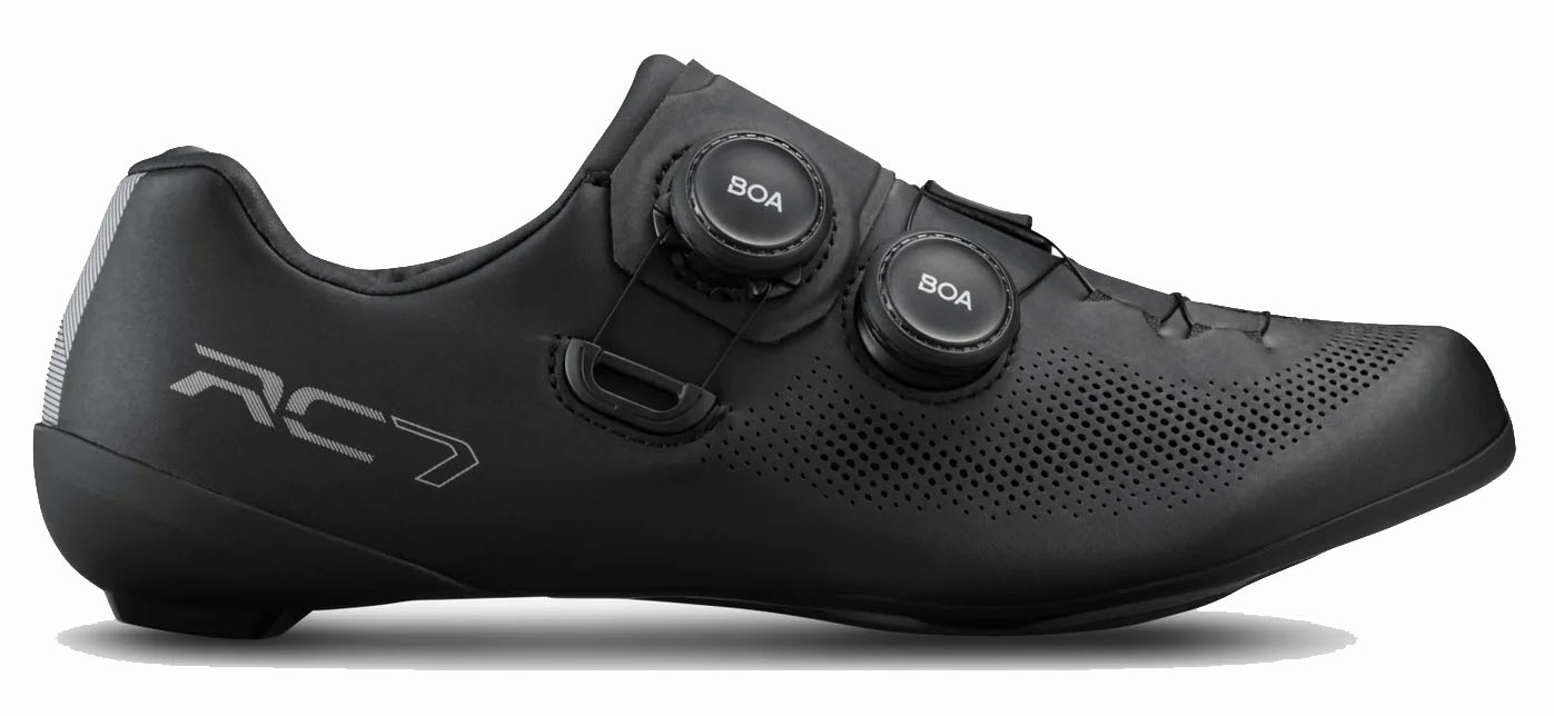 The Shimano SH-RC703 Shoes are performance-oriented road shoes that don’t skimp on all-day comfort. These RC703 Shoes are inspired by the pro-level Shimano S-PHYRE shoes, with legendary S-PHYRE fit technology and high-performance features. Updated from the RC702, the RC703 features a new Power Zone lace guide, to reduce weight and increase pedaling stability when combined with the synthetic leather upper. The dual L6Z BOA adjustment dials, a new lower sole stack height, and an expanded cleat adjustment range combine to create one of the fastest, most comfortable shoes on the market. No matter where the road takes you, the RC703 is designed to get you there, fast.