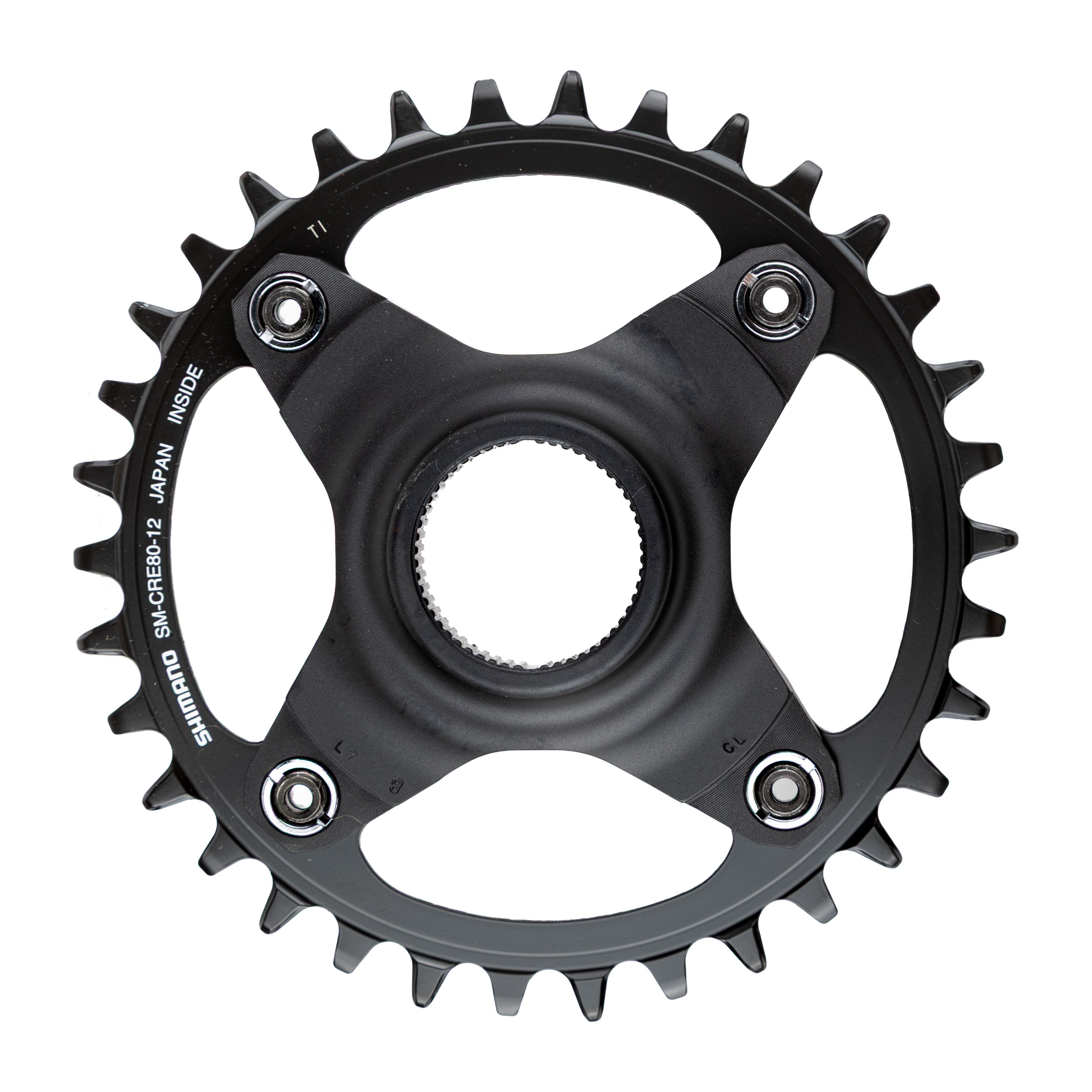 The Shimano STEPS SM-CRE80-12-B chainring is a purpose-built chainring for e-MTB drivetrains and optimized for rough, techy terrain. Using Shimano's Dynamic Chain Engagement+ technology, it offers exceptional chain retention and a smoother pedaling feel, even when the trails get rough. Direct mount compatibility and an optimized chainline for Boost (53mm) setups make it a versatile upgrade for Shimano STEPS systems. The STEPS SM-CRE80 Chainring is provides e-MTB riders everywhere with durable performance and a smooth pedaling feel on any trail.