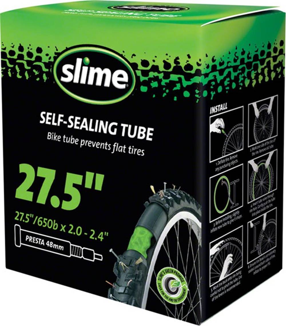 The Slime Inner Tube is now available in the popular 27.5 size. It is filled with a sealant that allows it to be a self-sealing tube. It stops leaks caused by punctures of up to 1/8th inch to the tread area of a tire. The sealant stays viable for 2 years and the valve core is removable should you want to replenish or add sealant later.