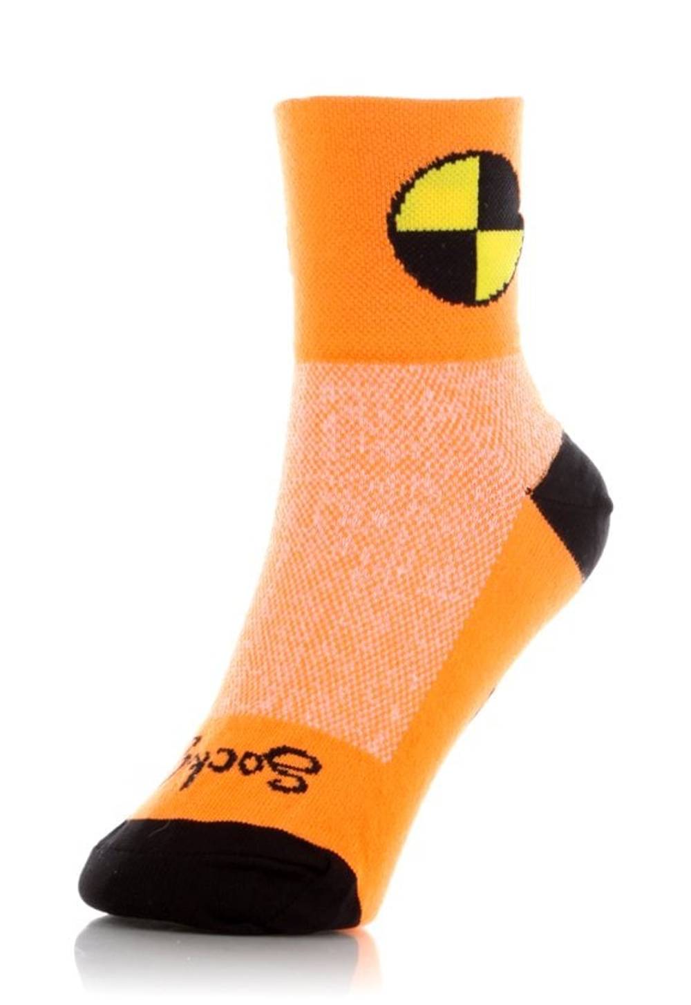 SockGuy Crash Test Dummy Orange Sock is a Double Knit Mesh sock that is made with moisture wicking micro denier acrylic, nylon, and spandex for exceptional comfort and strength.