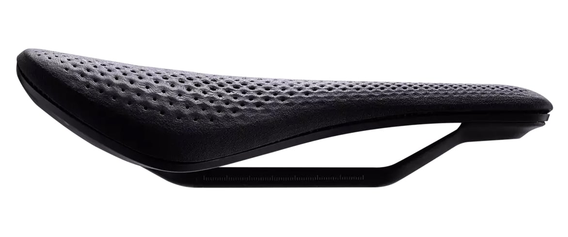 No matter where you ride, the S-Works Power EVO with Mirror is built to give riders next-level comfort and high-performance support. Designed for dynamic riders who move fore and aft, it combines Specialized’s Body Geometry fit with a redesigned shape and Mirror Technology to minimize pressure and maximize power output. The new concave design incorporates 3x more Mirror material than the original, with 47,000 struts and 21,000 nodes, the Power EVO Mirror's 3D-printed Mirror inserts create a thick, adaptive matrix that dramatically reduces sit bone pressure and nose pressure compared to traditional saddles. The wider nose, reimagined wing flare, and invisible cutout provide a smooth, hammock-like ride feel that adapts to every movement—helping you stay powerful, focused, and out of the pain cave.
