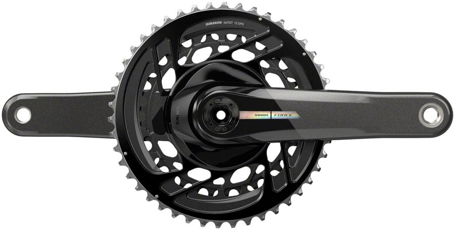 The crank is where all the magic happens on a bike. Your pedaling power is transferred to the rear wheel so you can accelerate forward. With an upgraded crank, more of your pedaling power will go to the rear wheel. The SRAM Crankset Force D2 DUB is built with X-Range gearing technology that gives you more range and a smoother gear progression, so you're always in the right gear. It has a unique chainring shape that results in a lighter weight, stiffer, and more durable crankset. The carbon fiber crankarms are lighter and stiffer compared to aluminum and the DUB bottom bracket interface adds durability and simplicity.