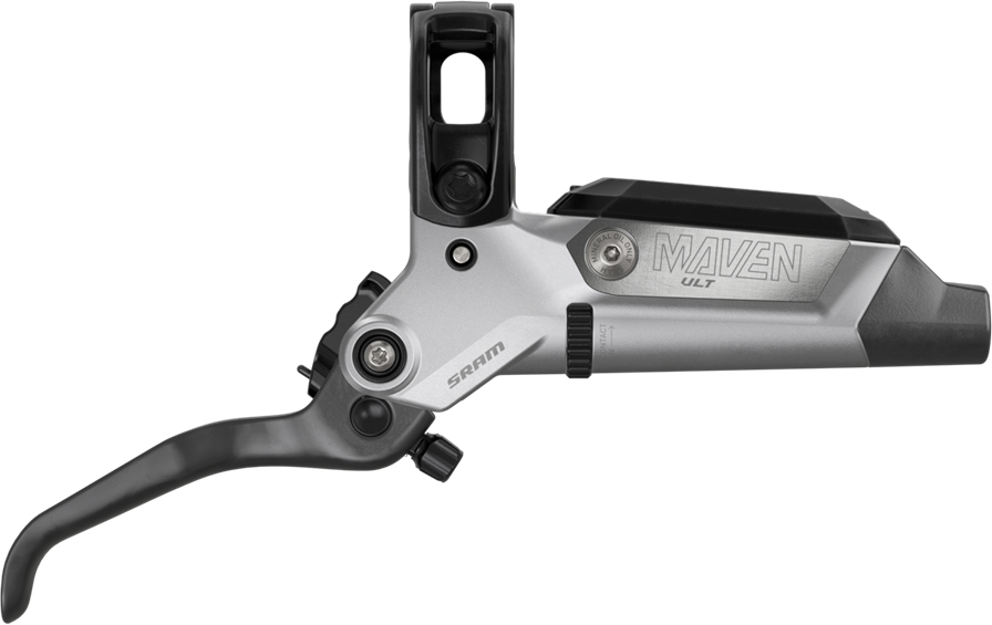 Maven sets the bar for maximum braking power on today’s faster, steeper trails. At the lever, Maven Ultimate’s SwingLink architecture refines the leverage curve for a smooth ramp-up, strong modulation, and less hand fatigue on long descents. A stiff, 4-bolt caliper delivers repeatable clamping force and improved thermal management, keeping lever feel and power consistent from the first pull to the last corner. Designed for flagship builds, Maven Ultimate adds a carbon lever blade, a caliper with machined edges, and titanium hardware. Tool-free reach and contact-point adjustment make quick work of ergonomics adjustments, for a precise cockpit setup every time.