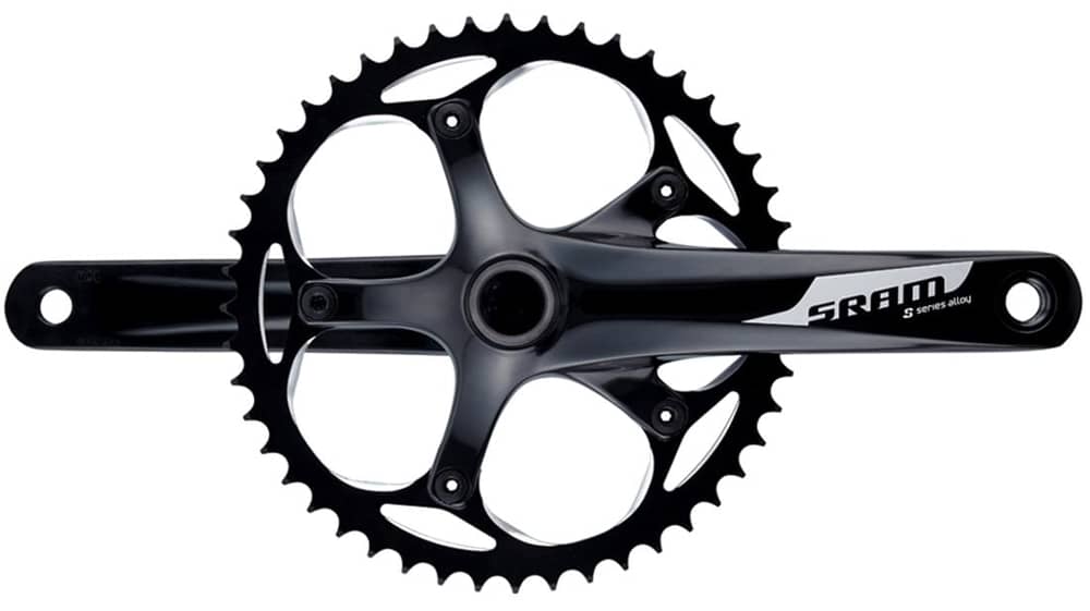 Spruce up your fixie or singlespeed road bike by upgrading to the SRAM S300 crankset. The forged aluminum crankarms and hollow GXP spindle create a crankset that is Lightweight, stiff and affordable. It is a great alternative to its more expensive, older sibling, the SRAM Omnium. Included is a dependable and smooth GXP threaded bottom bracket.