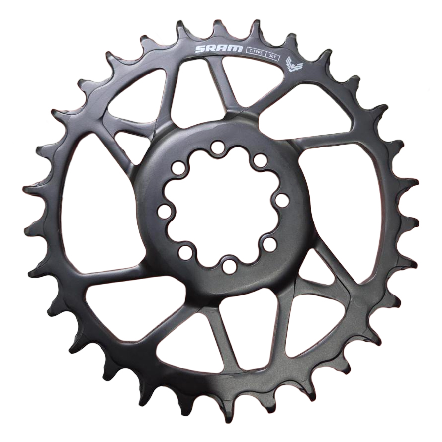 The chainring is an important part of your drivetrain. This piece keeps your chain secure while you're pedaling. The SRAM T-Type Eagle Steel Chain Ring is rugged, durable, and bash guard compatible. It is designed for SRAM 12-speed T-Type drivetrains with an 8-bolt direct mount. It comes in either a 30T, 32T, or 34T setup and has a +3mm offset.