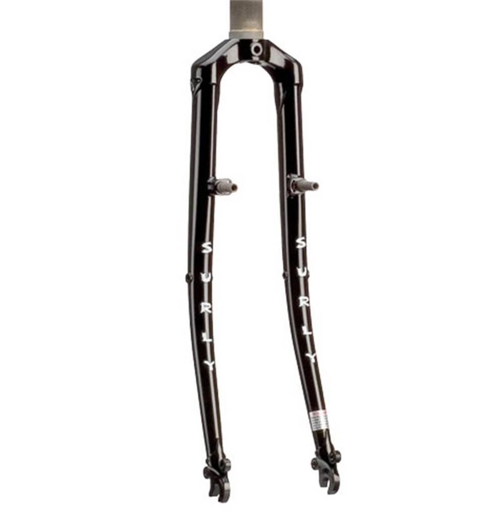 The Surly Long Haul Trucker was designed to be used on the Long Haul Trucker touring frame. This fork features a beautiful sloping crown and dropouts brazed to curved blades. It’s got dual eyelets at the dropouts for fenders and a rack, threaded bosses brazed into the fork blades for mounting a lowrider rack, and cantilever studs which work with canti or linear pull brakes.