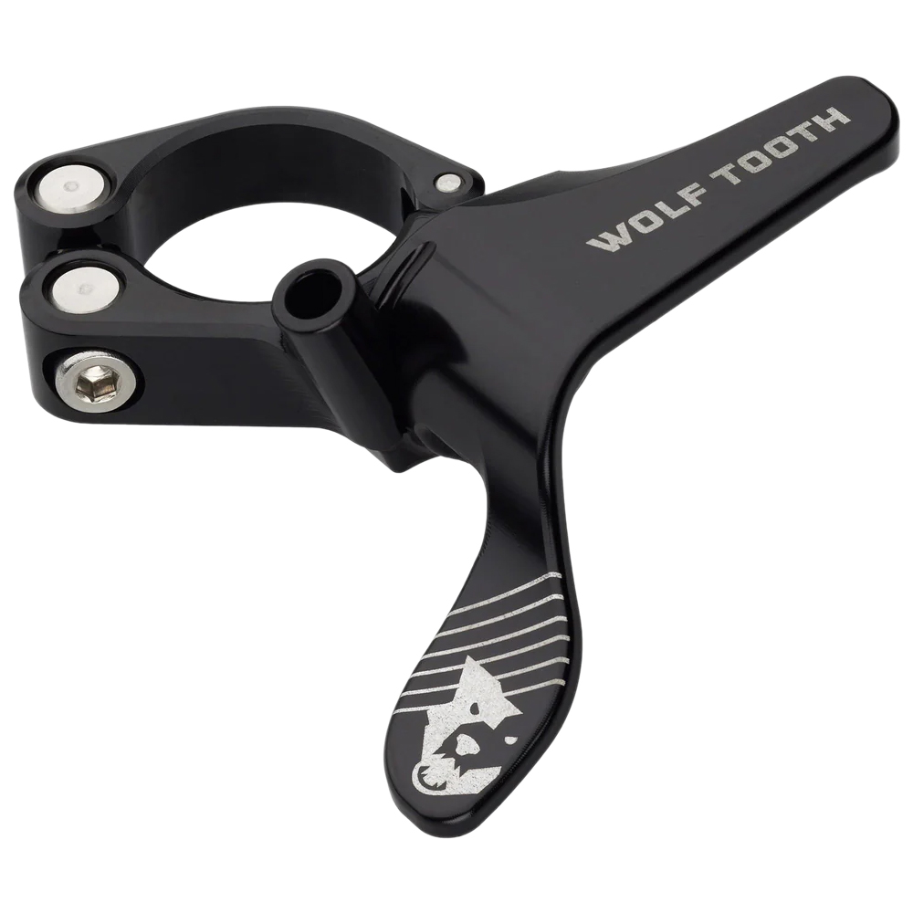 Dropper posts aren't just for mountain bikes anymore. You can always add them to your gravel bike. The Wolf Tooth Drop Bar ReMote is the bar-end dropper post lever for drop bar bikes. It can be actuated while riding on the hoods or in the drops thanks to refined ergonomics and a longer lever for easier access. It has two 11mm diameter Enduro ball bearings that are used at the pivot point for smooth actuation. This arrangement of bearings adds durability to the design, eliminates play, and allows for a smaller assembly compared to similar dropper levers. The machined clamp is positioned on the outside of the handlebars, which allows for the base to be closer to the bars, creating an assembly with a lower profile than competitors.
