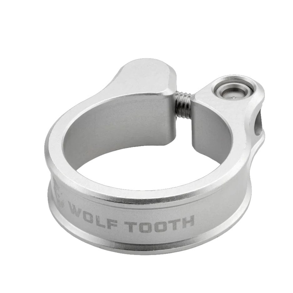 This Wolf Tooth Components Seatpost Clamp is a precision-machined alternative to cheap, heavy seatpost clamps. This Minnesota-made clamp is CNC-machined at the Wolf Tooth Components factory from 6061 aluminum, and tips the scales at only 30-40 grams (size dependent). The Wolf Tooth Seatpost Clamp is designed to provide even clamping force around the circumference of the seatpost and frame, with a spherical washer and cylindrical anchor barrel that allow the bolt to self-center. This keeps the clamp from binding, and reduces the risk of stripped threads and broken bolts. This Seatpost Clamp is even compatible with Wolf Tooth Titanium Hardware Upgrade Kits (sold separately) for a bit of extra bling.