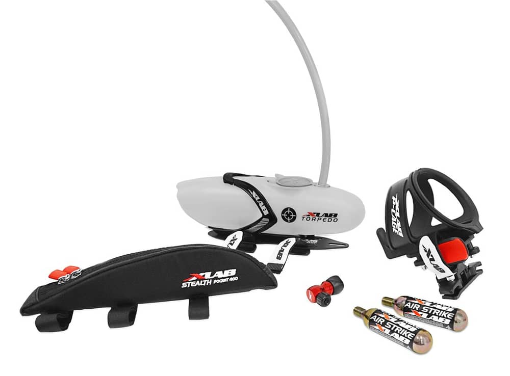 Complete. Well thought out. Ready to carry hydration, tool and nutritional needs for an Olympic Distance race or a long training ride. The XLab Intermediate Kit gives you the Torpedo System 50, Stealth Pocket 400, Delta 100 System, Multi-Strike Repair Holder, Nanoflator, and Air Strike CO2 cartridges.